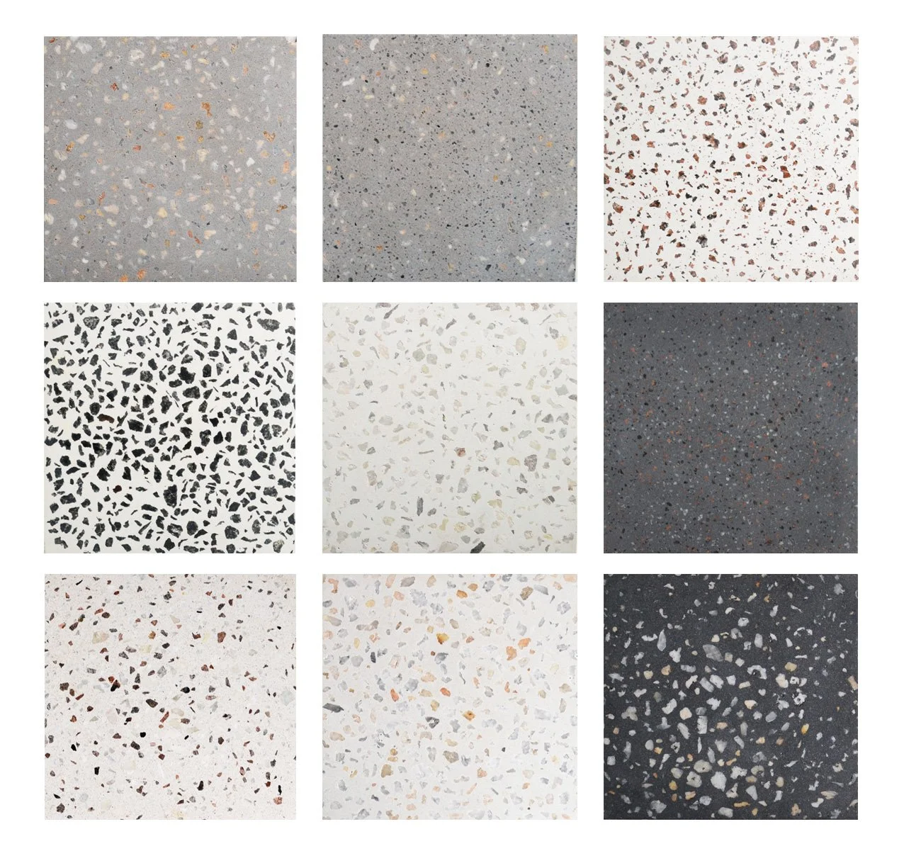 Here some samples from our Nature terrazzo collection.